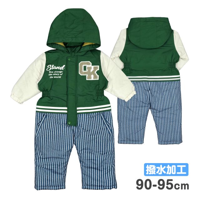ジャンプスーツ ベビー キッズ 男の子 子供 撥水加工 スタジャン風 綿入り 防寒グリーン