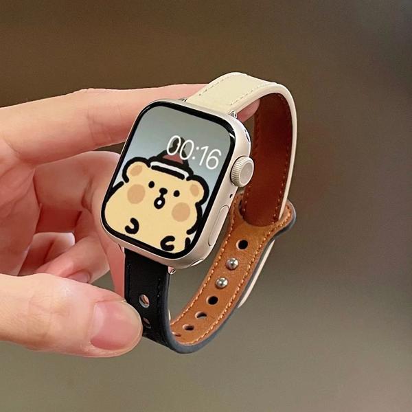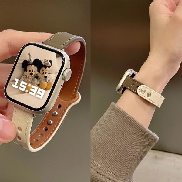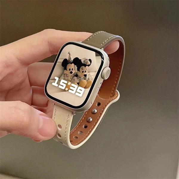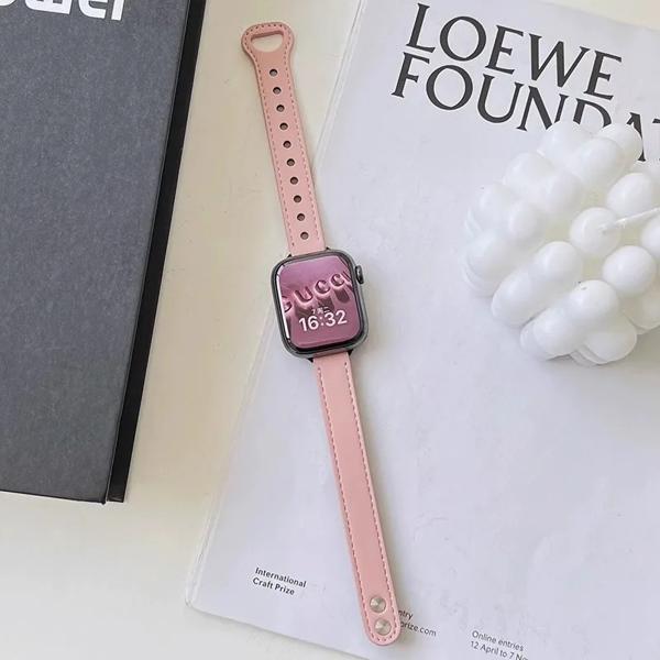 Apple Watch用の薄い革製ストラップ iwatch 7 se 6 5 4 10 9 8 46 42mm 41mm 44mm 45mm 38mm 40mm