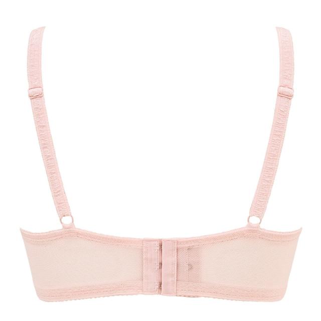 カップとストラップの接ぎ部分に三角のパネルを付けることで、より脇肉を逃さず、すっきり整えます。