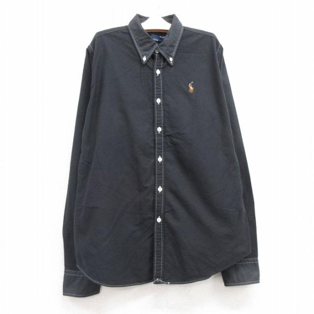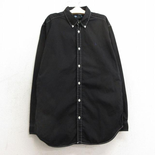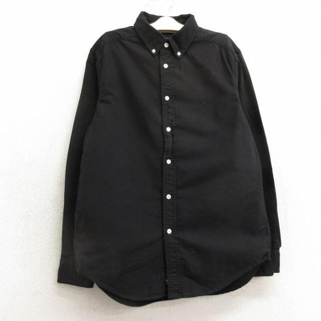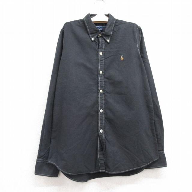 【商品名】 古着 ラルフローレン スポーツ 長袖 ブランド シャツ キッズ ボーイズ 子供服 ワンポイントロゴ コットン ボタンダウン 黒 ストライプ