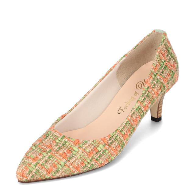 レディース パンプス チェック ツイード ポインテッドトゥ 1330 レディース靴 靴 シューズ 美脚 秋冬 ベージュ フィーリングオブユイ Feeling of yui