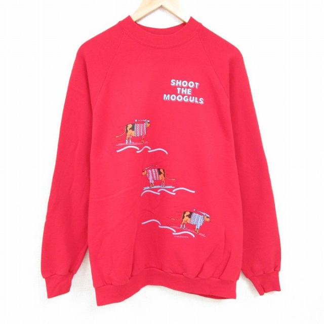 【商品名】 XL★古着 ジャージーズ 長袖 スウェット メンズ 80年代 80s ウシ ラグラン クルーネック USA製 赤