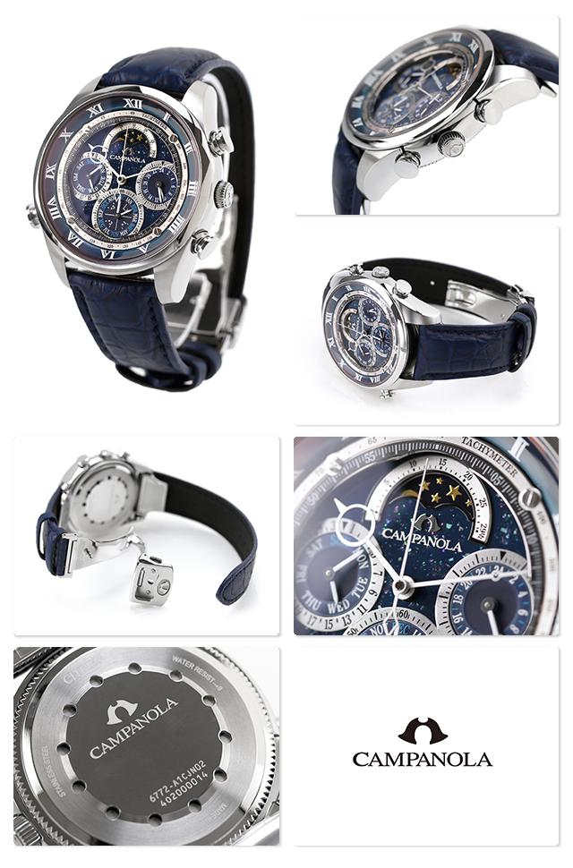 【選べるノベルティ付】 シチズン カンパノラ コンプリケーション コレクション グランドコンプリケーション 宙鏡 そらかがみ クォーツ 電池式 腕時計 ブランド メンズ クロノグラフ ムーンフェイズ CITIZEN CAMPANOLA AH4080-01M アナログ ブルー 日本製