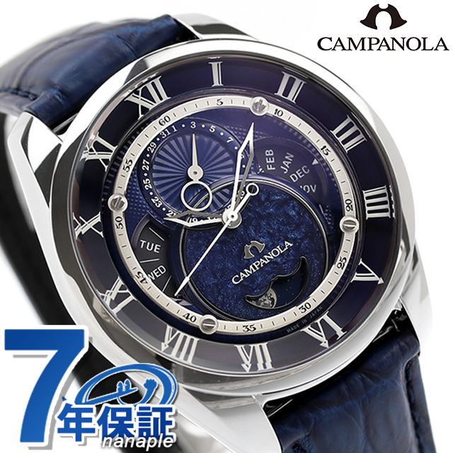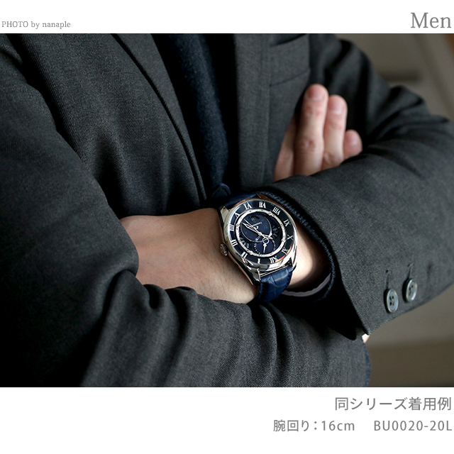 正規品 7年保証キャンペーン 送料無料 シチズン カンパノラ エコ・ドライブコレクション リングソーラー ムーンフェイズ ソーラー 日本製 エコドライブ エコ・ドライブ メンズ 腕時計 BU0020-20L CITIZEN CAMPANOLA ECO-DRIVE COLLECTION RING SOLAR アナログ ブルー ◆究極のメカニズムと美しさを持つ独創の時計。雄大な宙に想いを馳せ、今という時を愉しむ。CAMPANOLA(カンパノラ)。平安時代の詩に着想を得た「宙鏡(そらかがみ)」は、青漆に織り交ぜられた微細な金属粉が宙で瞬く星々を表現。美しい宙を投影する鏡のように、あなたの腕元を彩ります。美しさと視認性を両立させた時分針を採用。壮大な宙を表現する文字板は、同系色の配色とデザインバランスにより、モダンな印象に仕上げています。視認性を高めた12時位置と3時位置、9時位置に日付け、月、曜日を表示。日付早修正機能も搭載されています。文字板の見返し部分にあるリング状のソーラーセルで光を吸収し発電します。 発売日:2024年11月発売
