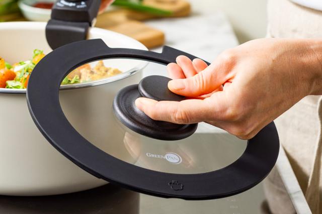 GREEN PAN ガラス蓋 20cm クリックシェフ専用 ( グリーンパン 蓋 ふた 鍋ふた フライパンフタ 専用ガラス蓋 窓付き 20センチ フタ 鍋用 フライパンカバー ソースパン ガラスふた 鍋フタ 調理器具 キッチンツール )