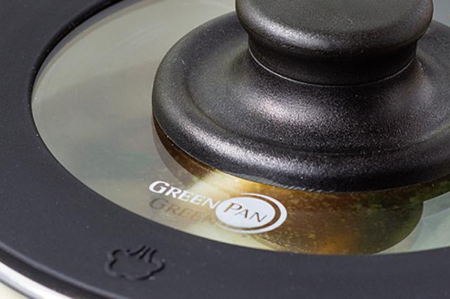 ガラス蓋にはグリーンパンのロゴがワンポイントで入っています。