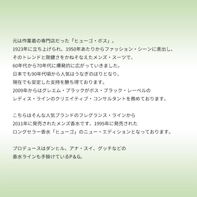 こちらは、そんなフーゴー・ボスのフレグランス・ラインから、2011年に発売されたメンズ香水です。