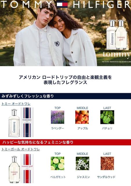 こちらは、そんなトミー・ヒルフィガーのフレグランス・ラインから、1996年に発売されたレディス香水です。メンズ香水の「トミー」とのカップリング・アイテムで、メンズ版同様に、このブランドを代表する香水です。
