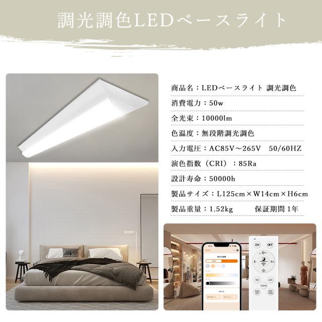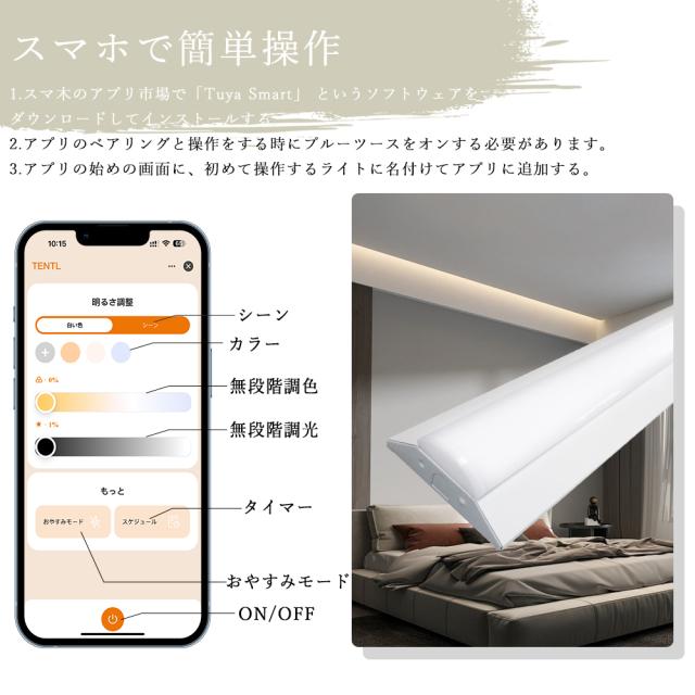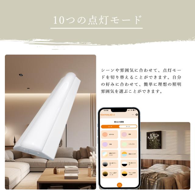 10本セット LED蛍光灯 40W形 2灯相当 直管 調光調色 50W 10000lm スマートライト リモコン付き スマホ操作 直管型LED蛍光灯 インテリア LED ベースライト トラフ LED器具一体型蛍光灯 シーリングライト 一体型照明 天井直付