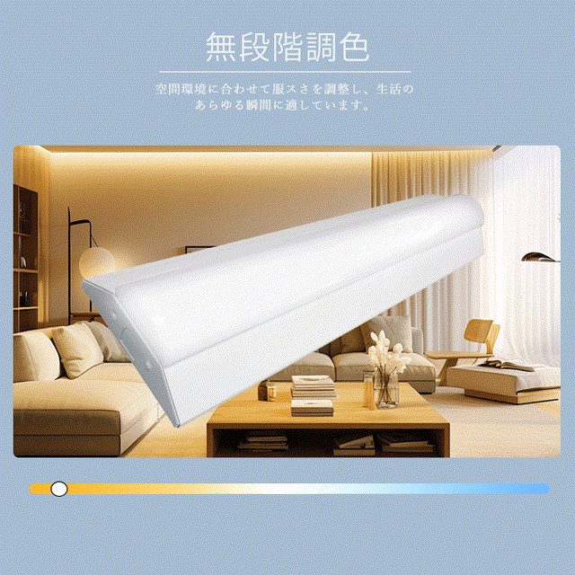 - 照明の色温度を滑らかに調整できる機能です。この機能により、ユーザーは特定の色や雰囲気に応じて照明の色を自由に変更できます。たとえば、温かみのある色から冷たい色まで、シーンや気分に合わせて自在に調整できるため、さまざまな用途に対応できます。