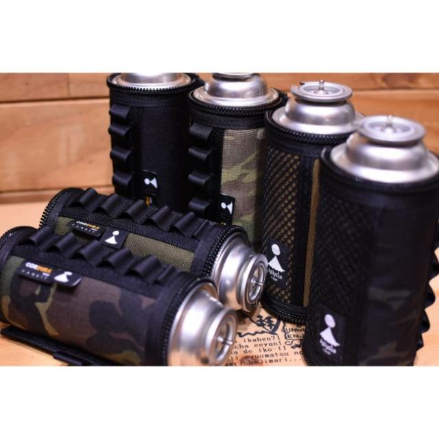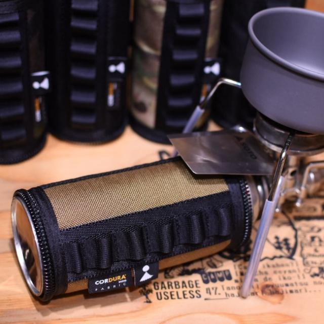コーデュラナイロンを使用、市販のCB缶に巻き付けてベルクロテープで固定できます。