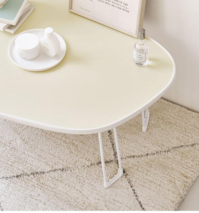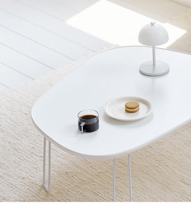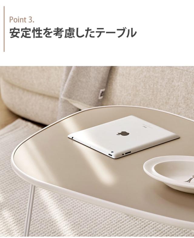 丸くて柔らかいフォルムと、マイルドなカラーがかわいらしい折りたたみテーブルです。
