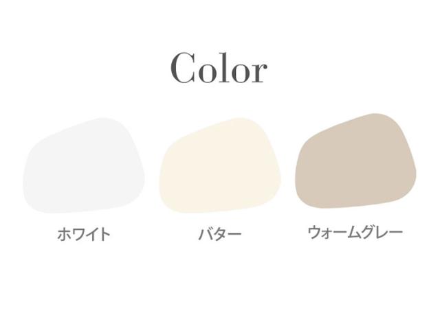 本場カラーのホワイトに加え、トレンドカラーのウォームグレー、バターを揃えました。