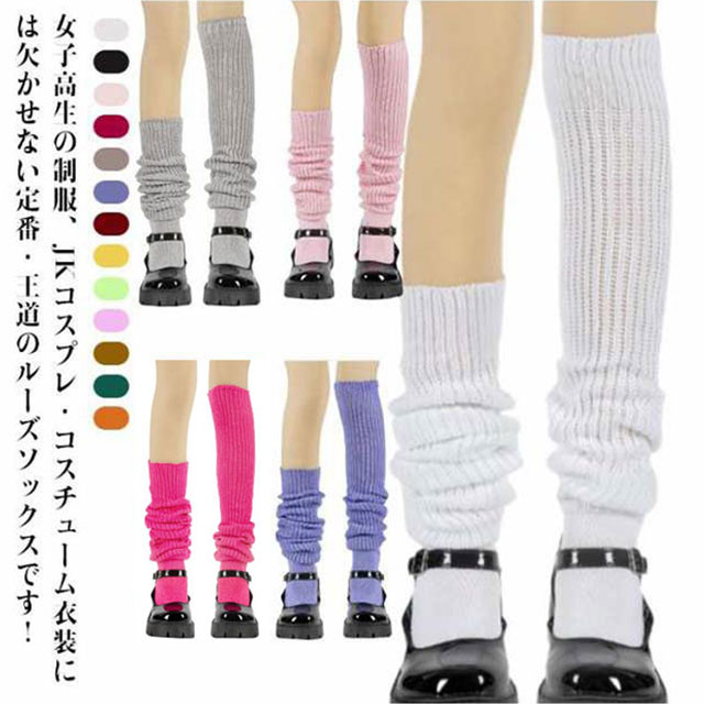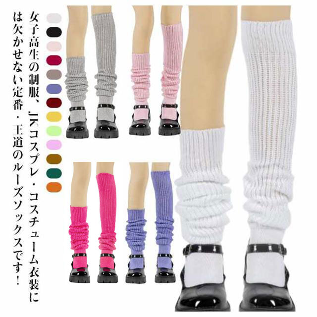 | 女子高生の制服、JKコスプレ・コスチューム衣装には欠かせない定番・王道のルーズソックスです! 1990年代後半に大流行した懐かしのソックス、クシュクシュにしてボリュームをもたせて履くざっくりとしたリブ編みでボリューム感満点です。 程よい厚みがあり、たるませて履けるルーズ感がポイント!スニーカーやローファーとの組み合わせも相性はバツグン♪ 肌ざわりがとっても気持ちいレディース向け ニーハイソックスで、お好みのシルエットにアレンジいただけます。 複数の色と長さで、お気に入りの服装に合わせることができます! イベント、学園祭、JKワールド、パーティ・クリスマス・ハロウィン・仮装、大人のおしゃれアイテムとしても活躍します。 | |