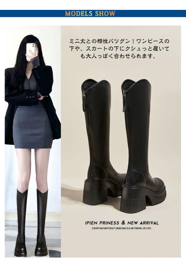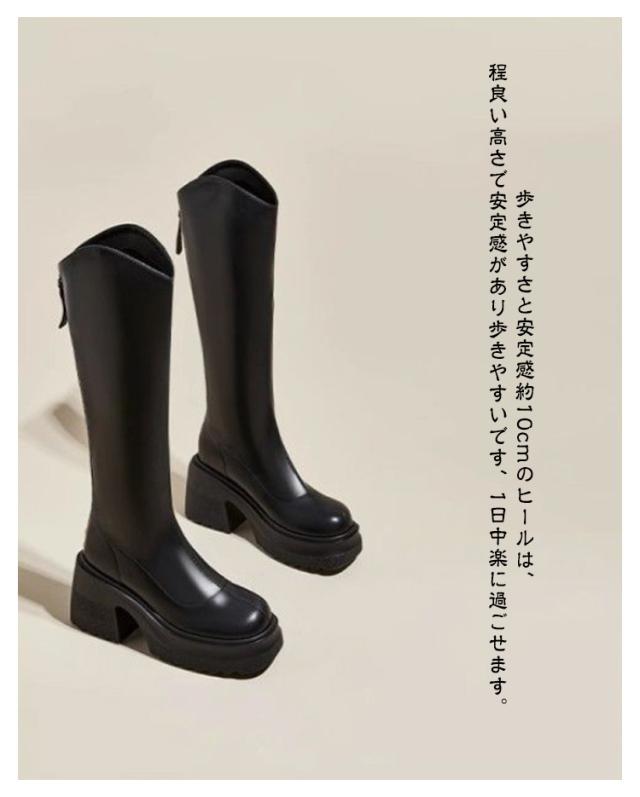 | 【厚底 10cmヒール】【ロングブーツ】【22.5〜25cm】 ミニ丈との相性バツグン!ワンピースの下や、スカートの下にクシュっと履いても大人っぽく合わせられます。 オシャレな若い女の子から大人女子まで、幅広い女性のお客様にご愛用いただいております。 ファスナーを上げ下げするだけで、楽に脱ぎ履きできます。 忙しい時でも簡単に脱ぎ履き出来ちゃいます。 歩きやすさと安定感約10cmのヒールは、 程良い高さで安定感があり歩きやすいです、1日中楽に過ごせます。 | |