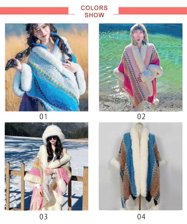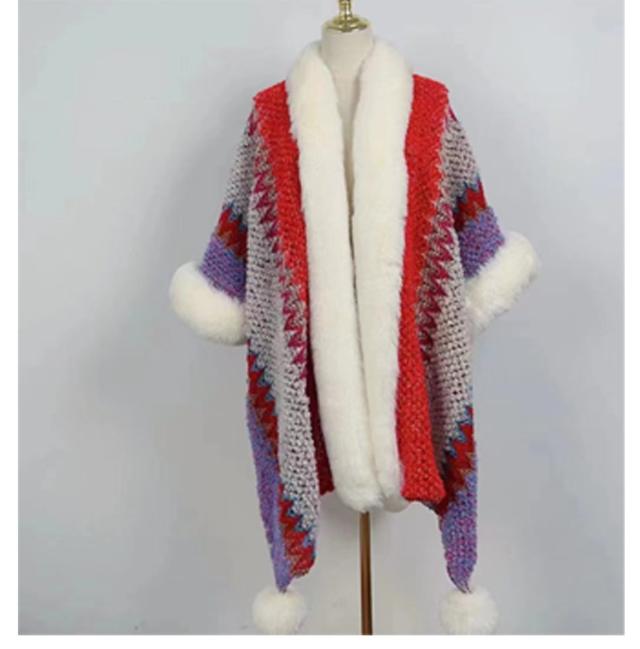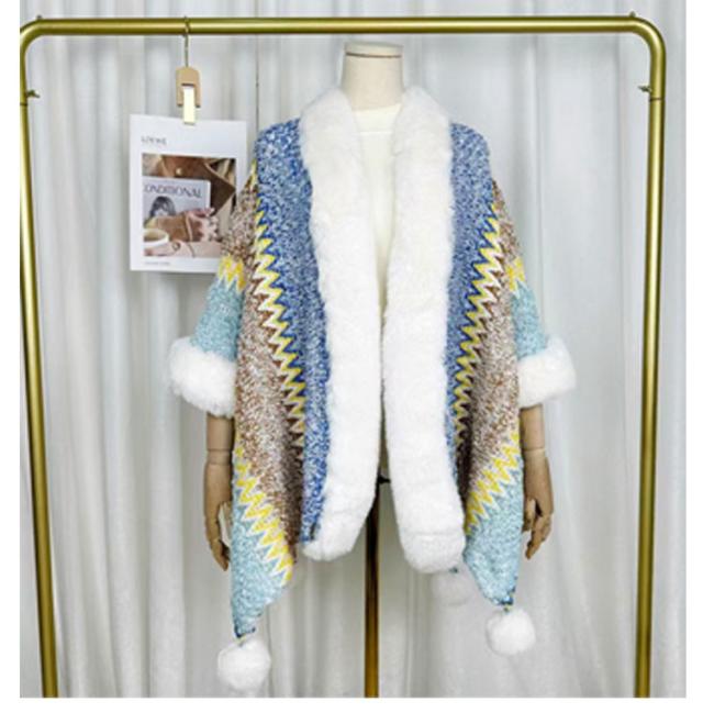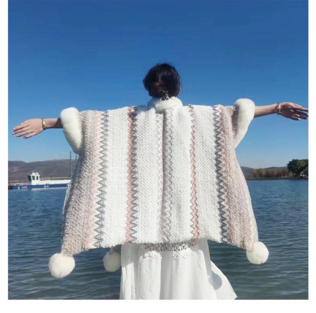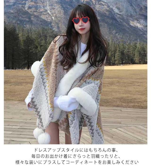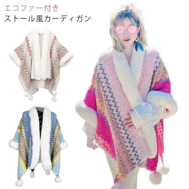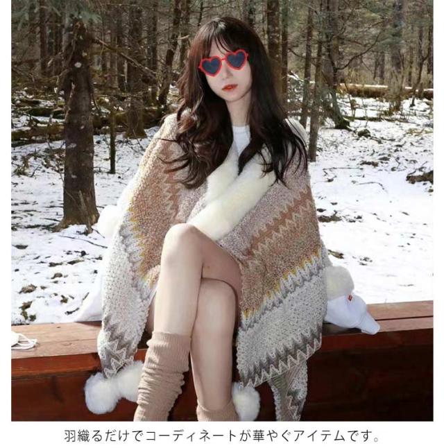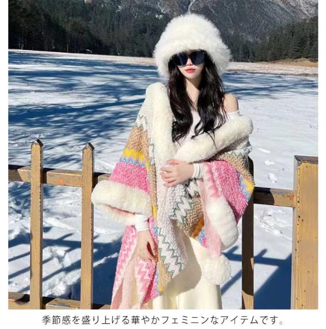 ストール ボンボン付き ストール マルチカラー 配色 レディース ミセス 振袖ショール ふわふわ マフラー ケープ ファッション 防寒 和洋兼用 和装小物 成人式 卒業式 結婚式
