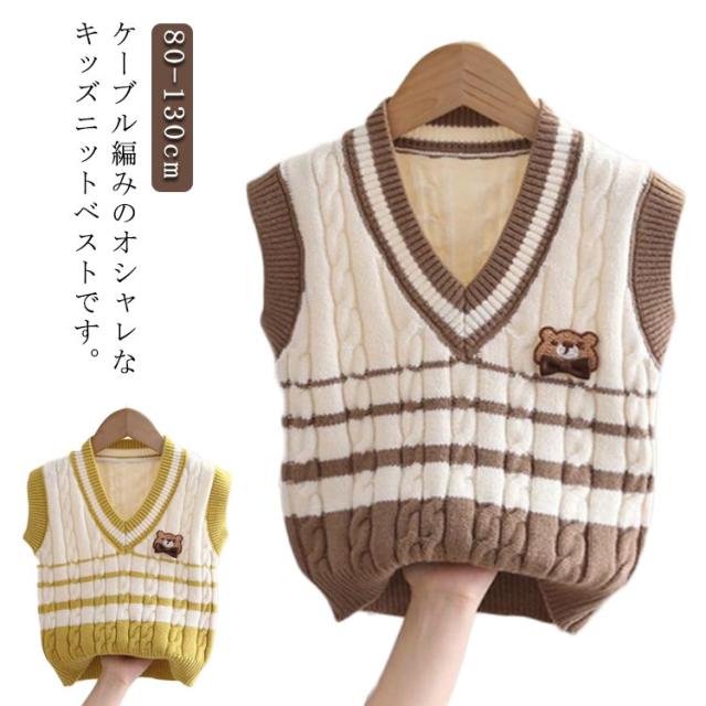 フォーマル 女の子 子供 ベスト 男の子 ベスト ニットベスト スクールベスト お受験 通園 子供 フォーマルベスト キッズ ケーブル編み Vネックベスト 男女兼用 ジュニア 春秋用 冬用 入園準備 Vネック 入園式 通学 制服 小学生 80 90 100 110 120 130cm