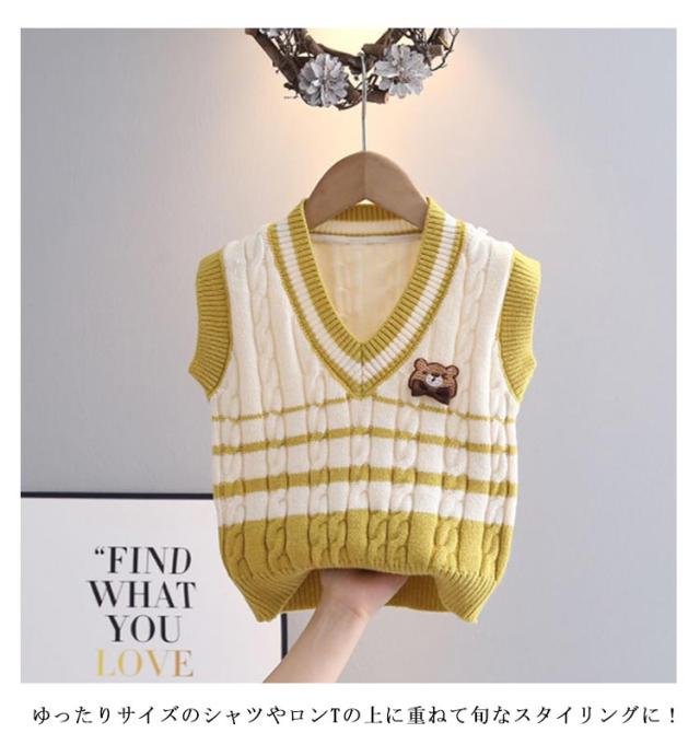 | ケーブル編みのオシャレなキッズニットベストです。 トレンドのくすみカラーが可愛いVネックのニットベスト♪ ゆったりサイズのシャツやロンTの上に重ねて旬なスタイリングに! 重ね着スタイルで親しみやすく、それぞれ単品でアレンジするなど、どこをとっても万能なデザイン。 軽くて暖かいので、ストレスフリー動きやすいので、お子様も快適。 ユニセックスで着用可。室内着としてもお出掛け着としても着用していただける。 | |