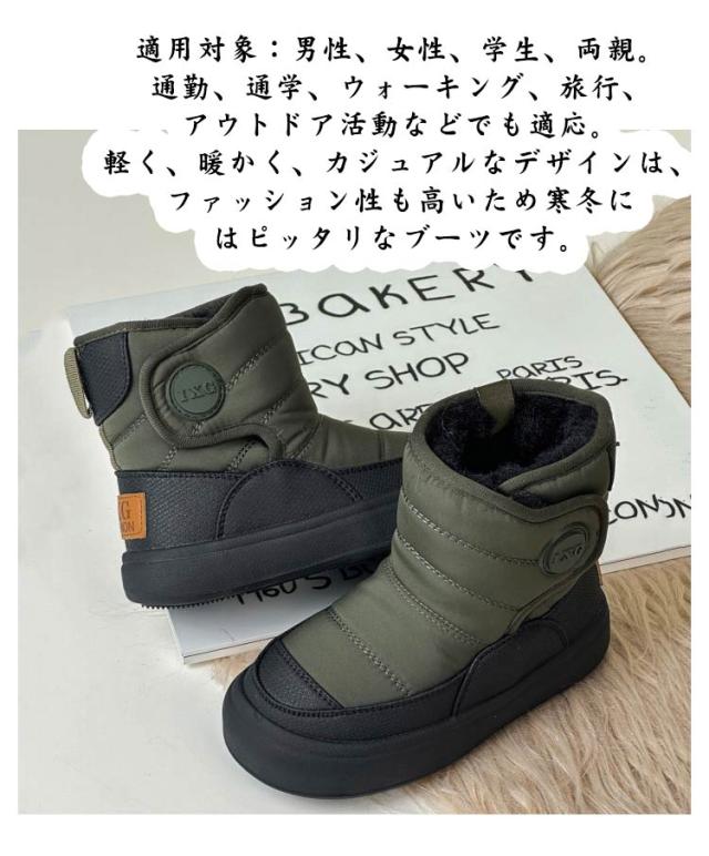 | 防水、防風、拭くだけでクリーンに簡単!スキーや雪遊びなどではとても便利です。 アウトソールは滑り止め機能搭載で、滑りにくいから安心して歩きます。クッション性でストレスが吸収され、足が疲れません。 履き口にマジックテープ式が付いた、お子様自分で緩めて脱ぐことができます。 適用対象:男性、女性、学生、両親。通勤、通学、ウォーキング、旅行、アウトドア活動などでも適応。軽く、暖かく、カジュアルなデザインは、ファッション性も高いため寒冬にはピッタリなブーツです。 | |