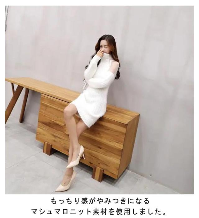 | もっちり感がやみつきになるマシュマロニット素材を使用しました。 タートルネックで首元まであたたかく、これからの季節に大活躍。 シンプルに見えて、たっぷりこなれ感!エアリー感のあるシースルー肩が大人可愛い! ミニ丈のスリムシルエットで、ボディラインをキレイに見せてくれます◎ 高い位置での切替×ミニ丈でスタイルアップ効果も◎ 程良い厚みのニットでアウターとも好相性です。 | |