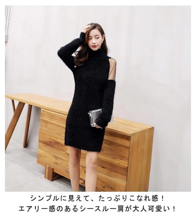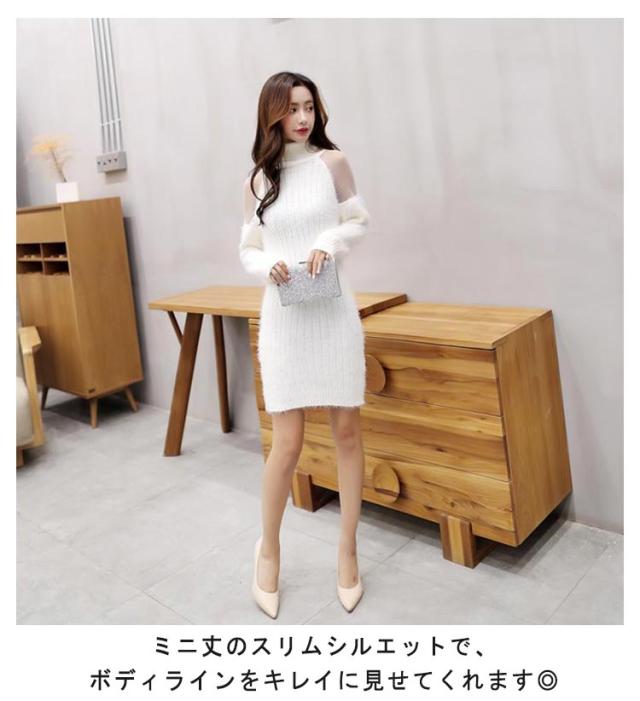 ニット ミニワンピース ワンピース 膝上丈 きれいめ タイトワンピース 長袖 ミニ丈 切替 シースルー ニットワンピース 長袖 ミニ丈 タートルネック ワンピース スリム 細見え キャバドレス 大人可愛い 送料無料 キャバ ドレス