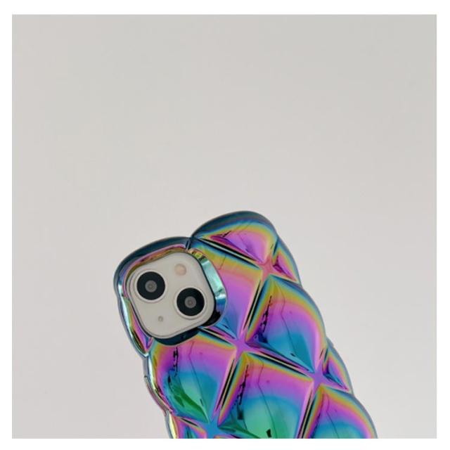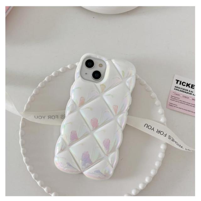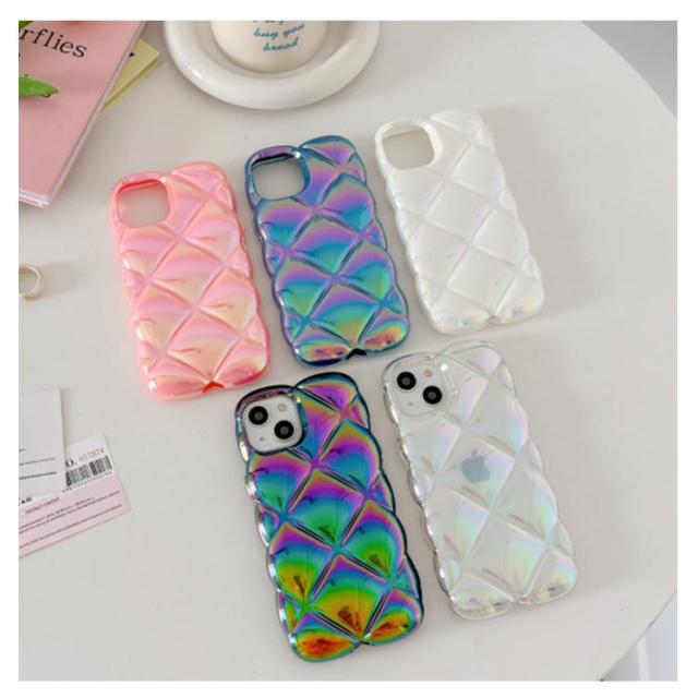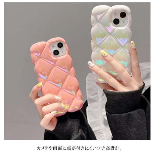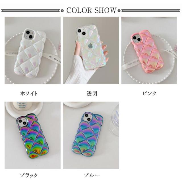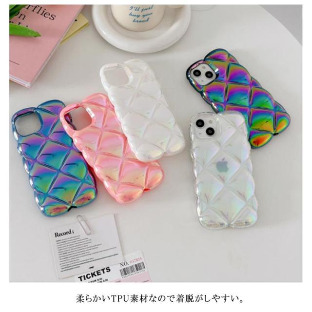| ぷっくりとした立体感が可愛いキルティングiPhoneケース。 光や角度で変化するオーロラカラーがポイント! カメラや画面に傷が付きにくいフチ高設計。 柔らかいTPU素材なので着脱がしやすい。 | |