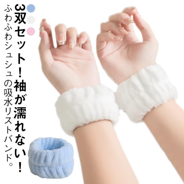 吸水 リストバンド 6個入 3双セット 袖濡れ防止 服濡れ防止 洗顔 手洗い お風呂上がり メイク 入浴 大人 子供 もこもこ ドライシュシュ 腕タオル シュシュ 吸水タオル 厚手 洗い替え スポーツ 汗取り 手首 アクセサリー おしゃれ 可愛い フリーサイズ 送料無料
