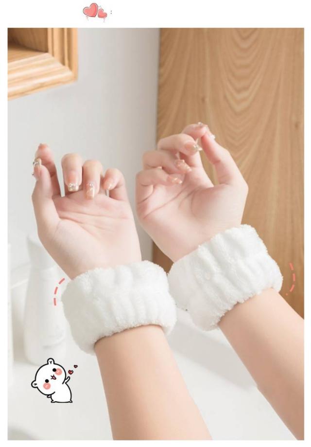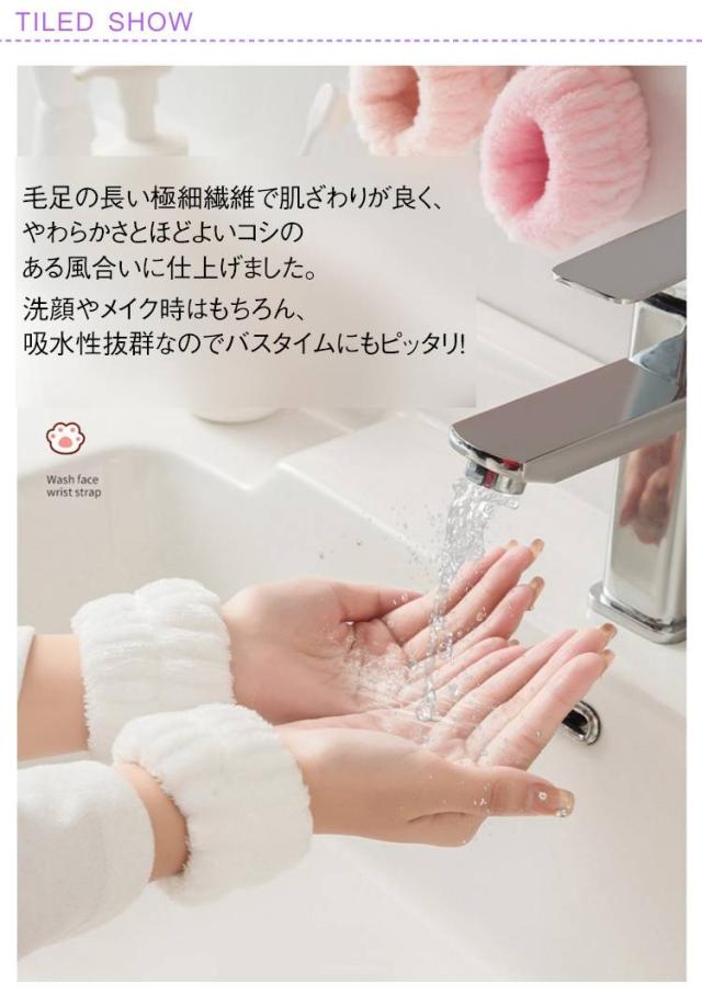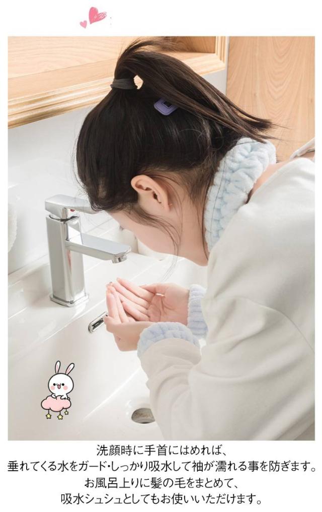 | 3双セット!袖が濡れない!ふわふわシュシュの吸水リストバンド。 毛足の長い極細繊維で肌ざわりが良く、やわらかさとほどよいコシのある風合いに仕上げました。 弾力がありソフトな素材だから締めつけず、大きな手首にも小さな手首にもフィットします。 洗顔時に手首にはめれば、垂れてくる水をガード・しっかり吸水して袖が濡れる事を防ぎます。 お風呂上りに髪の毛をまとめて、吸水シュシュとしてもお使いいただけます。 洗顔やメイク時はもちろん、吸水性抜群なのでバスタイムにもピッタリ! | |