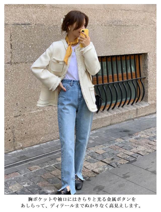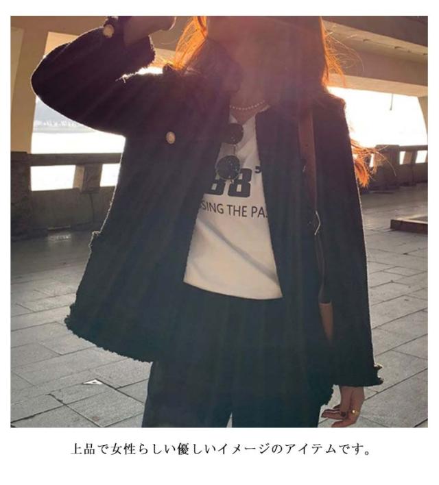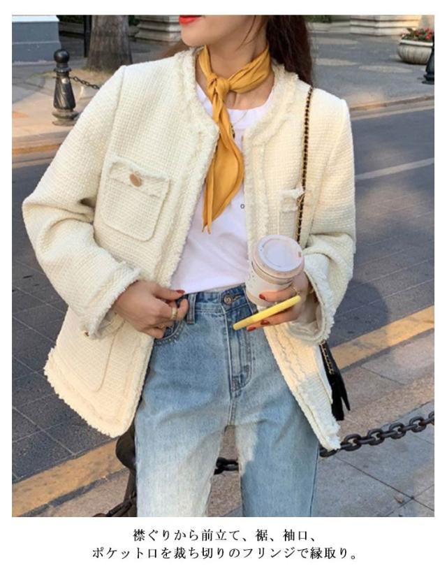 ジャケット ツイード 春秋 ノーカラージャケット スーツ フリンジ レディース アウター ノーカラー ノーカラー ツイードジャケット きれいめ 無地 上品 春 秋 ラウンドネック アウター ミモレコート フォーマル 体型カバー 着?せ