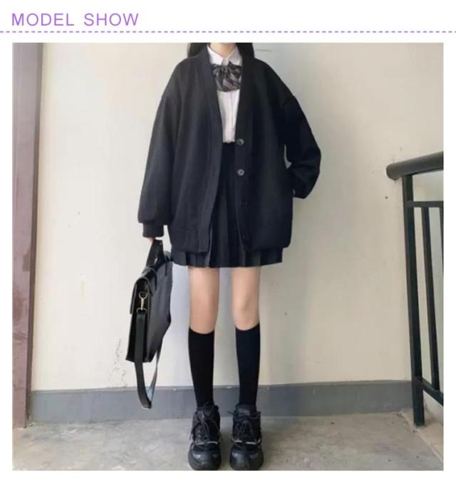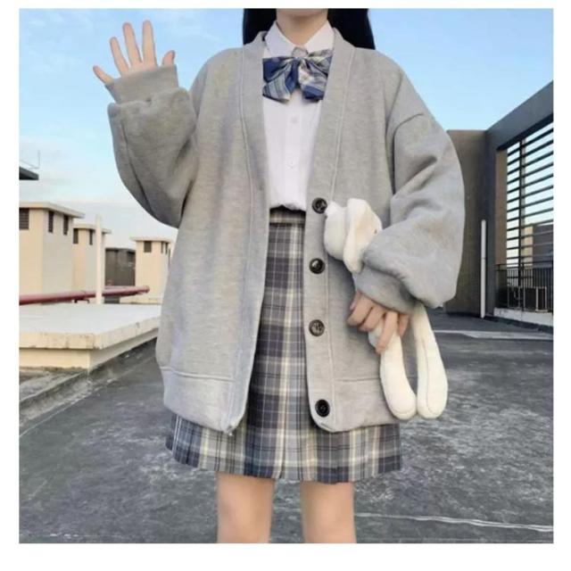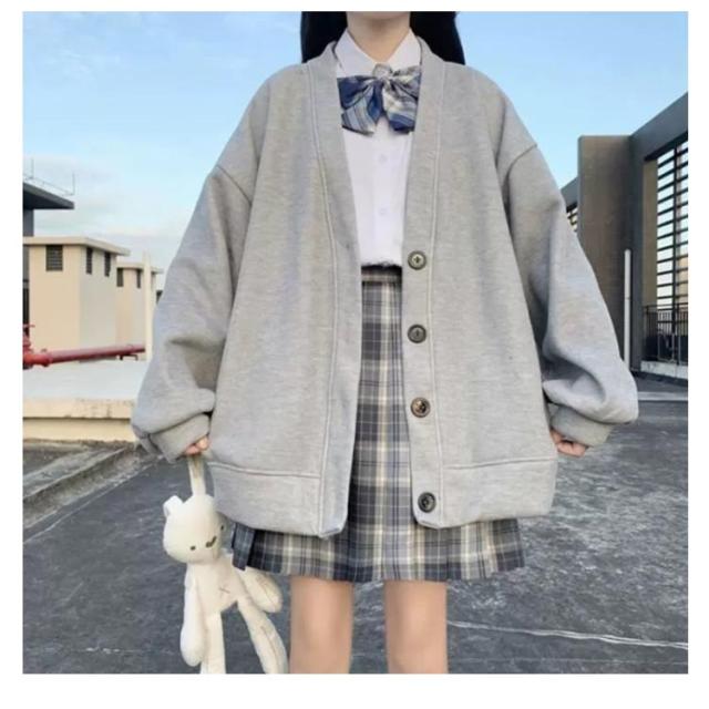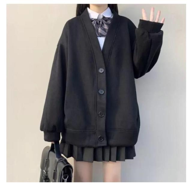 かわいい パーカー 高校生 レディース スクールカーディガン 前開き 秋 羽織り 女子 制服 アウター 学生服 無地 Vネック 秋冬 スウェット 中学生 ゆったり ブラック グレー S M L XL