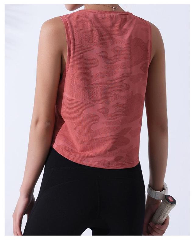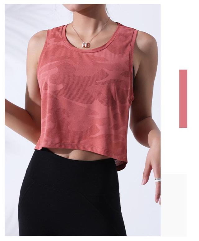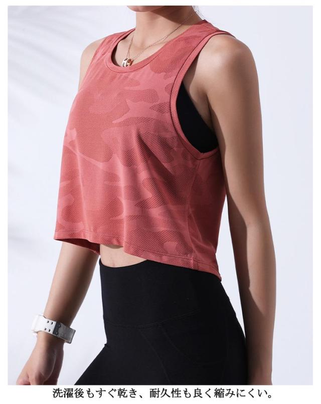 スポーツ タンクトップ レディース ショート丈 ジム ヨガウェア トップス へそ出し かわいい カモフラ 迷彩 ランニング 重ね着 ランニング バックデザイン ホットヨガ かわいい おしゃれ 送料無料