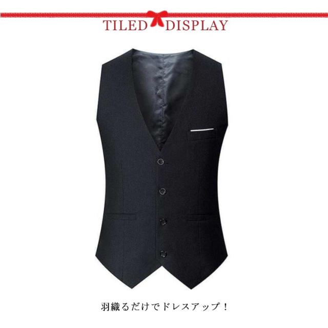 | メンズ用4つのボタンジレベスト 羽織るだけでドレスアップ! すっきりとしたシルエットがスマートな印象を与える、着やせ効果も抜群! スーツやジャケットと合わせてワンラック上のお洒落な格上げスタイルに。 | |