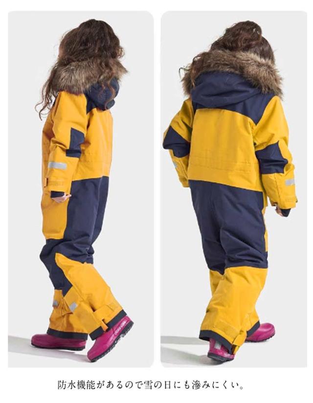 | お子様用でシンプルお洒落なスキーウェア 防水機能があるので雪の日にも滲みにくい。 ファスナーとボタンの2重構造の前開きタイプなので、隙間風をシャットアウトししっかり防寒。 雪が滲みやすいお尻部分は、縫い目ゼロで滲みにくい構造。 反射テープも搭載しているので、ライトなどを反射し夜道も安心。 北海道の子ども達は、寒い冬の通園や通学時にも着ています。スキー以外にも、自分にあわせた使い方で楽しめる。 豊かなサイズ・カラーバリエーションを用意して、兄弟姉妹のリンクコーデにも可愛いですね。 | |