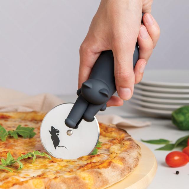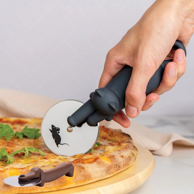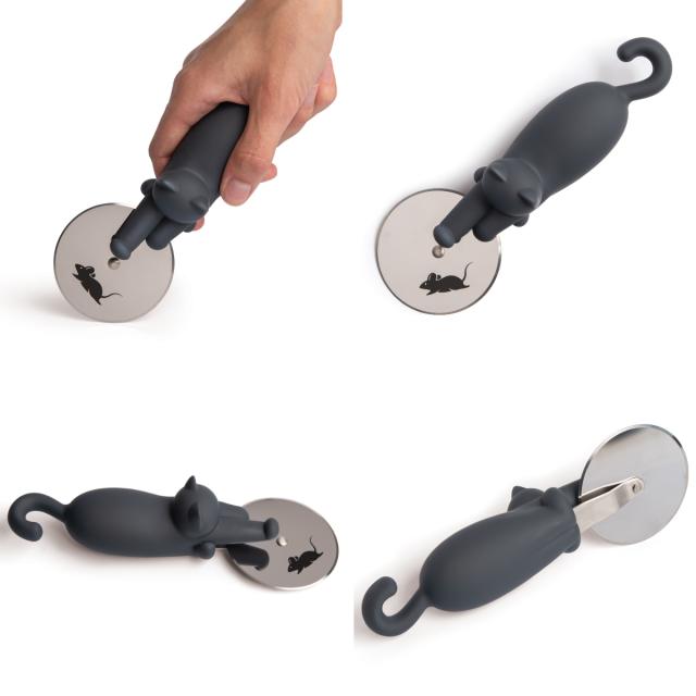 カッター部分にネズミがプリントされており、コロコロ転がすと、まるで追いかけっこをしてるような、とてもユニークな猫のピザカッターです。猫とピザ好きにはたまらない逸品です。