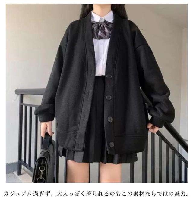 前開き スウェット 秋 パーカー 女子 レディース スクールカーディガン 羽織り 高校生 制服 S 学生服 Vネック 中学生 秋冬 かわいい アウター ゆったり ブラック グレー スクールカーディガン M L XL