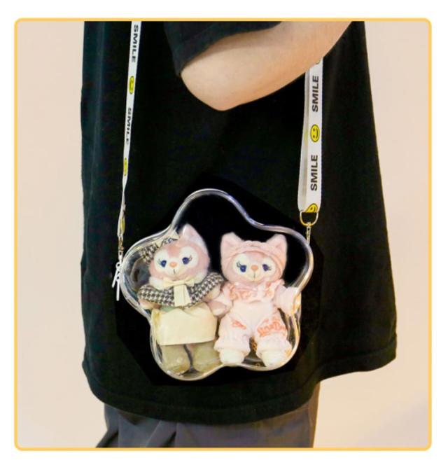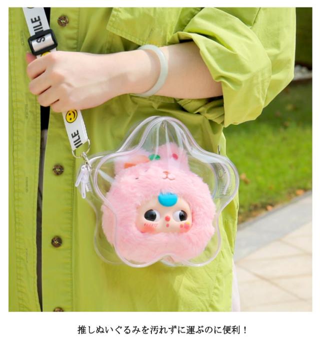 | 推し活におすすめ!「ぬいぐるみ肩紐付ポーチ」 透明素材でできているので、ぬいぐるみなどを飾ることができます。 推しぬいぐるみを汚れずに運ぶのに便利! 大きめサイズでさらに目立つこと間違いなし! イベントやライブ、普段使いでも、推しといっしょにおでかけできます♪ | |