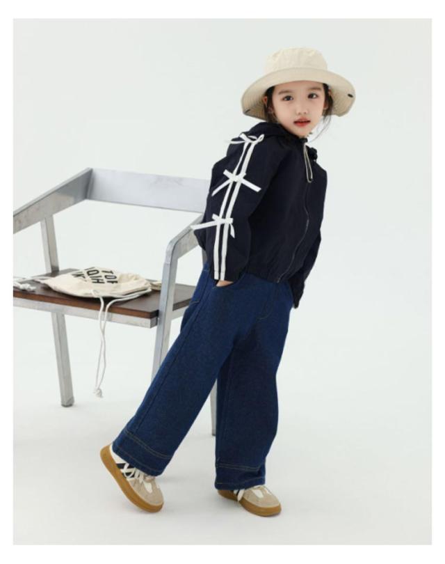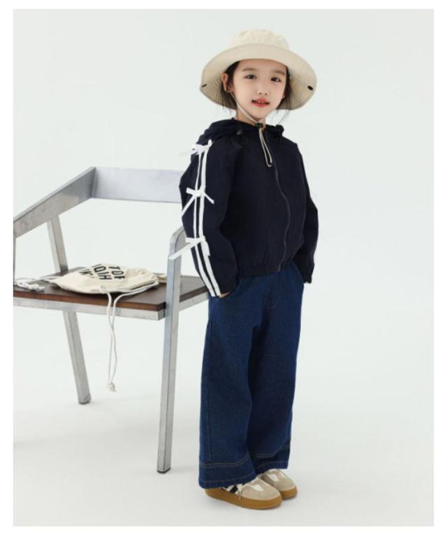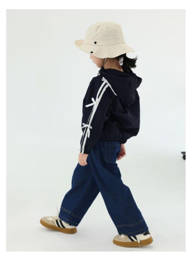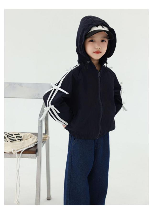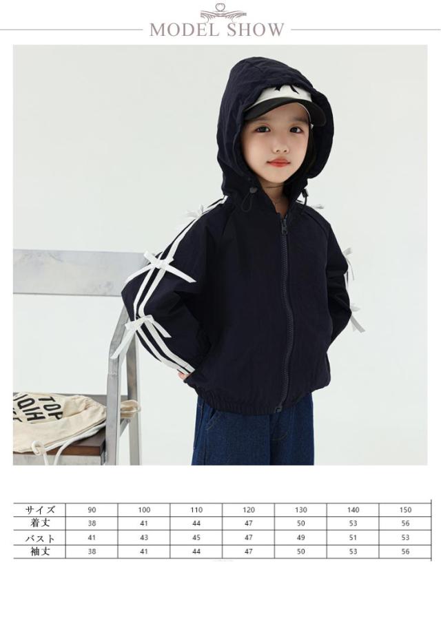 リボンジャケット 長袖 ウインドブレーカー アウター 前ファスナー ネイビー 女の子 おしゃれ着 送料無料 秋 春 冬 キッズ 子供服 ベビー服 韓国ファッション 羽織 上着