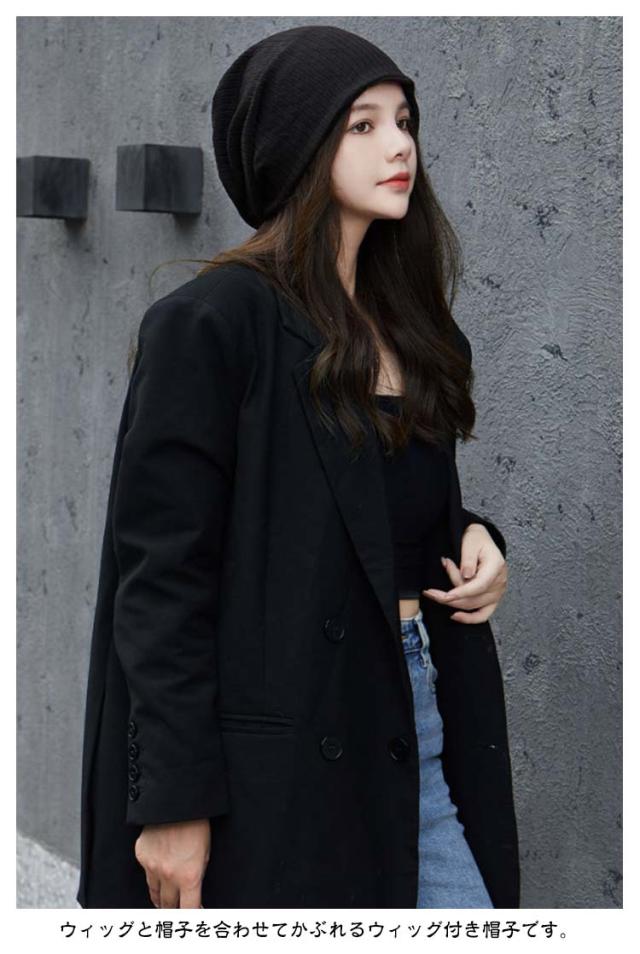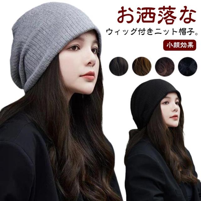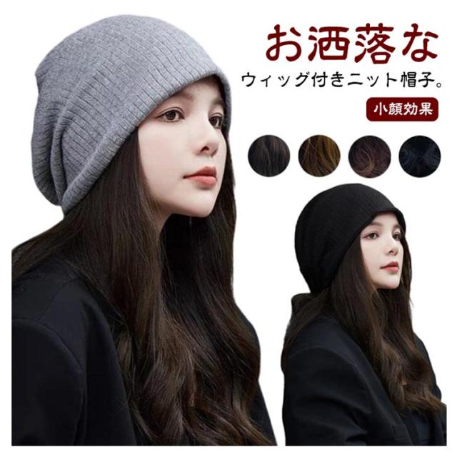髪付き帽子 ウィッグ付き帽子 秋 冬 ニット帽 レディース 毛付き帽子 かつら付き帽子 ロング ヘア カール かつら ウィッグ帽子一体型 帽子 ニット帽 ニットキャップ 医療用帽子 小顔効果 暖かい 髪付き帽子 簡単 自然 便利 おしゃれ 帽子ウィッグ 送料無料