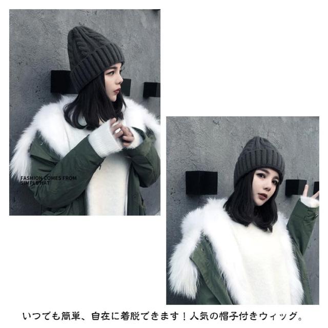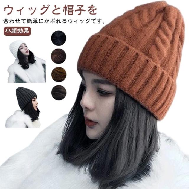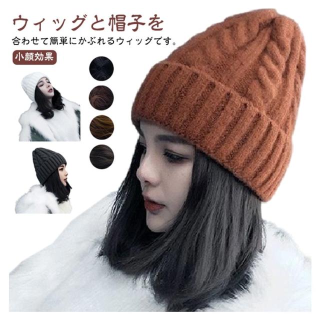 送料無料 ウィッグ帽子一体型 髪飾り ニット帽付き ウィッグ 暖かい 髪付き帽子 ウィッグ付き帽子 秋 冬 レディース 毛付き帽子 かつら付き帽子 小顔効果 かわいい コスプレ ストレート おしゃれ ニット帽 ニットキャップ 医療用帽子