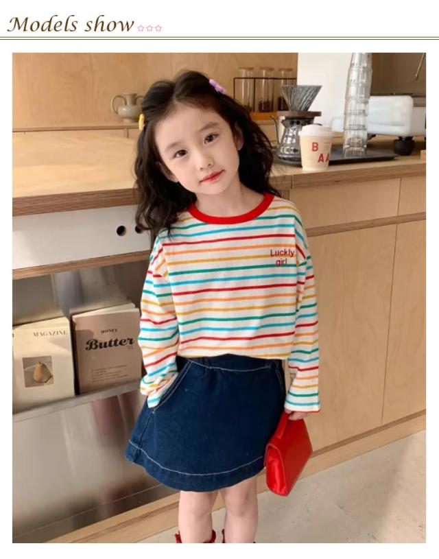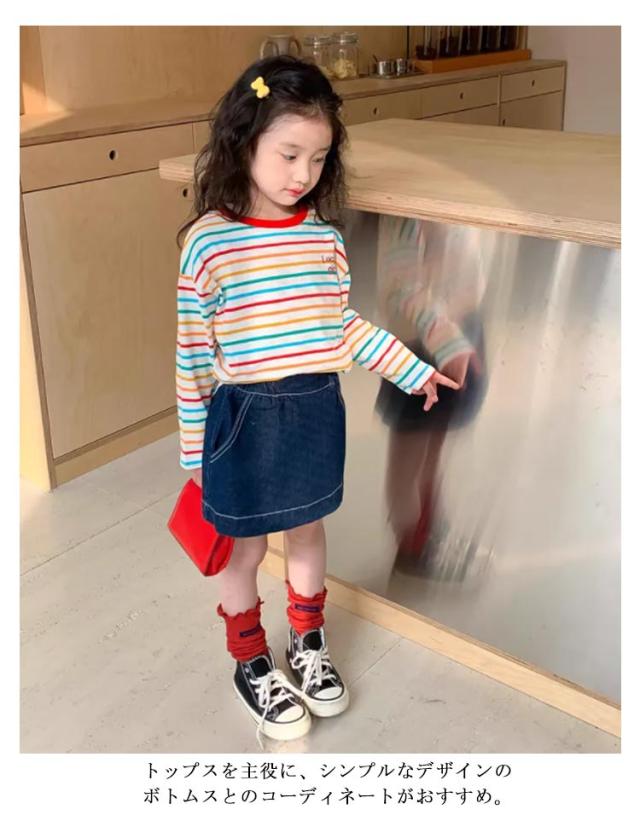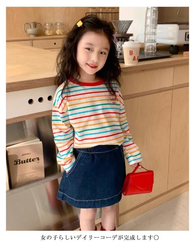 トレーナー 長袖 レインボー クルーネック レインボー プラウス 子供服 Tシャツ 女の子 キッズ 冬 カジュアル 秋服 長袖 トップス ストライプ 韓国子供服 ポーダー オシャレ 通園 通学 小学生 保育園 幼稚園 普段着