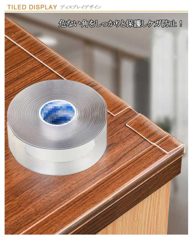 | 2m 3m 5m / 7サイズ選べる! 剥がせるの両面テープタイプでインテリアの邪魔にならない、 使う場所を選ばないケガ防止用透明コーナークッション。 危ない角をしっかりと保護しケガ防止! つかまり立ちを覚えたあたりの赤ちゃん、子供の思わぬ大事故を未然に防ぎます。 赤ちゃんや小さいお子様・ご年配の方がいらっしゃるご家庭や場所には最適! | |