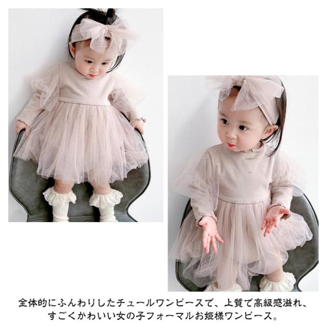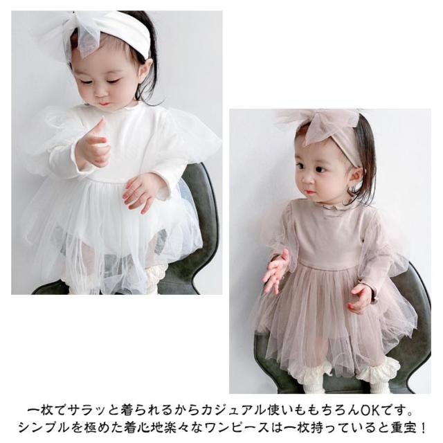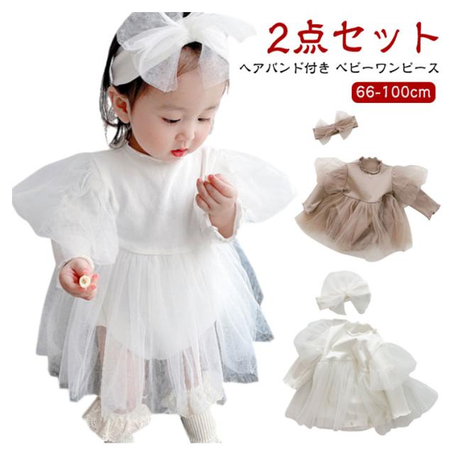 新生児 ワンピース チュール 女の子 ベビー 長袖 ベビー フォーマル 秋 女の子 ベビー服 ベビードレス ワンピース ロンパース 白 ロンパース ベビー服 セレモニードレス ヘアバンド付き 誕生日 1歳 出産祝い 贈り物