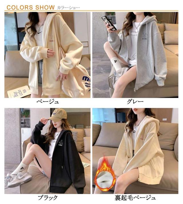 | 【裏起毛あり・裏起毛なし】 季節の変わり目にはライトアウターしても活躍してくれる、着回しやすいアイテム ゆったりルーズなシルエットが可愛い 着丈はお尻まですっぽり隠れる安心丈で、 袖丈も長く、パンツあわせもスカートあわせも、 ゆるっとしたかわいらしいシルエットになります。 フルジップタイプで脱ぎ着もスムーズにすることができます。 | |