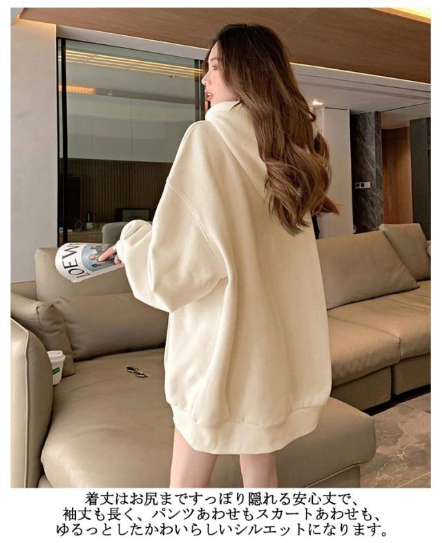 オーバーサイズ オーバーサイズ ビッグシルエットパーカー ジップアップパーカー 長袖 レディース ジップパーカー フーディ パーカー アウター 綿 コットン ゆったり 春 ロング丈 フード付き カジュアル 体型カバー 着回し パーカー おしゃれ 秋 秋服 秋冬