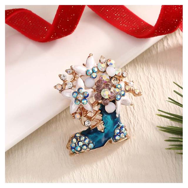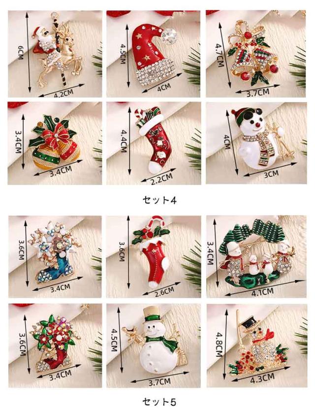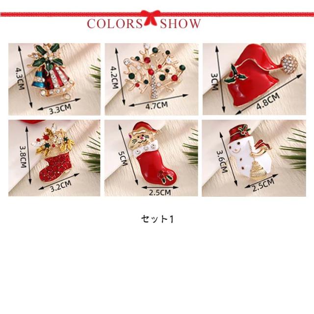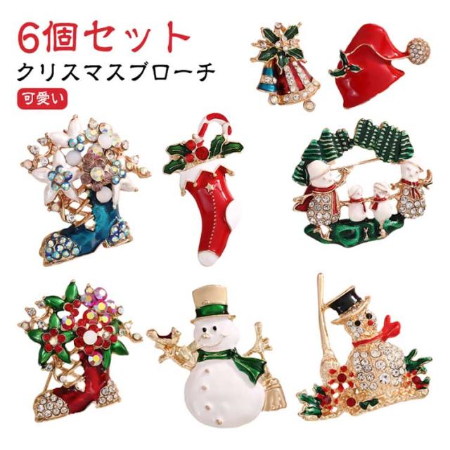 雪だるま 6個セット ブーツ キラキラ ブローチ サンタクロース ピンブローチ ピンブローチ クリスマスツリー リース プレゼント ギフト アクセサリー