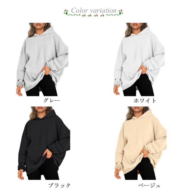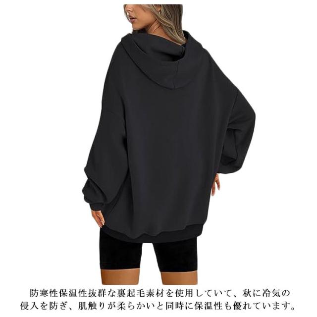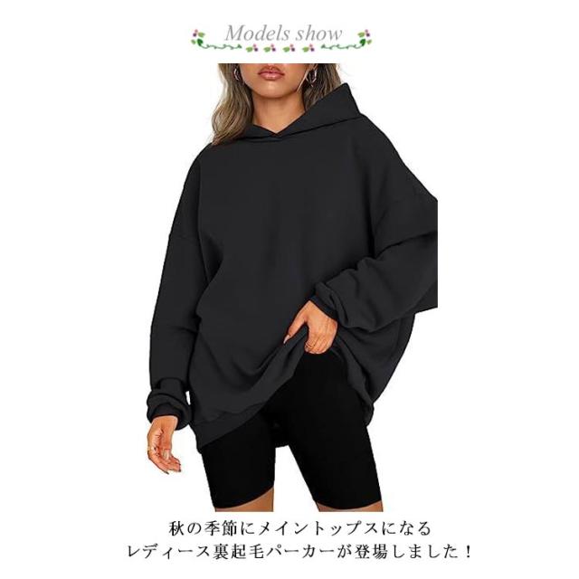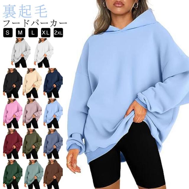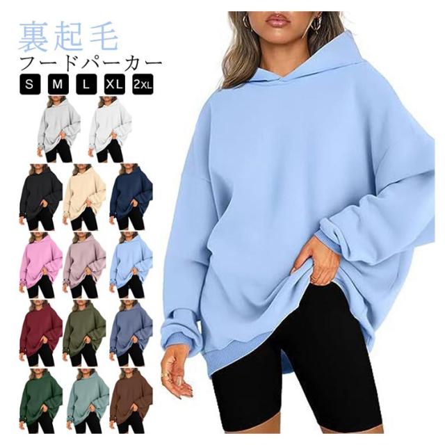 フードパーカー パーカー レディース フード付 裏起毛 長袖 トップス 大きいサイズ 裏起毛 大きめ 可愛い 春 秋 トレーナー 冬 ビックシルエット 無地 大人 女性