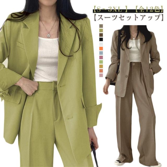 カジュアル レディース セットアップ 2点セット テーラードジャケット スーツ ストレートパンツ スーツ 通勤 パンツスーツ スーツ ママ オフィス ゆったり 卒業式 入学式 大きいサイズ 春夏秋冬