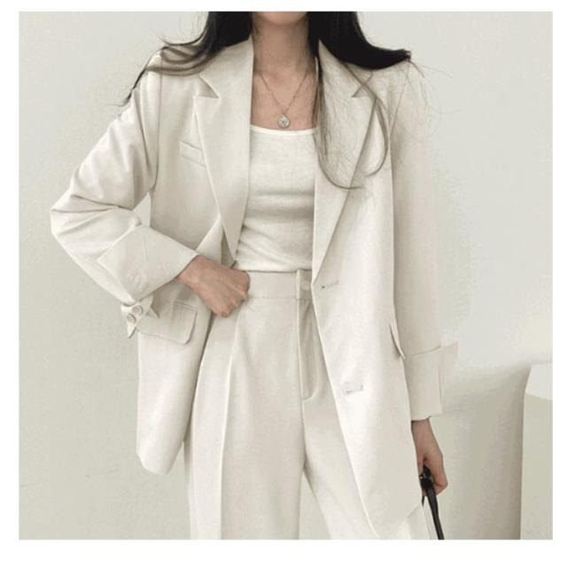 | 【スーツセットアップ】【S〜3XL 】【全12色】 働く女性のためのスタイルアップを叶えるパンツスーツが登場。 程よくトレンドを取り入れたなデザインなので、年齢問わず着やすいです。 ビジネスで使いやすいなデザインときちんと見えしながらも着心地のいい設計が魅力です。 上品でどことなく余裕を感じさせるデザインなので、学校行事なんかに着て行ったらかっこいいママとして一目置かれる存在になりそうです。 シンプルだからこそ、どの年代の方が着ても他とは一味違う雰囲気を醸し出すことができます。 カジュアルもフォーマルな場面も、様々な場合に対応できます。通勤・ビジネス・お出掛け・卒業式・入学式・面接・発表会などあらゆるシーンにお使いいただけるのスーツです。 | |