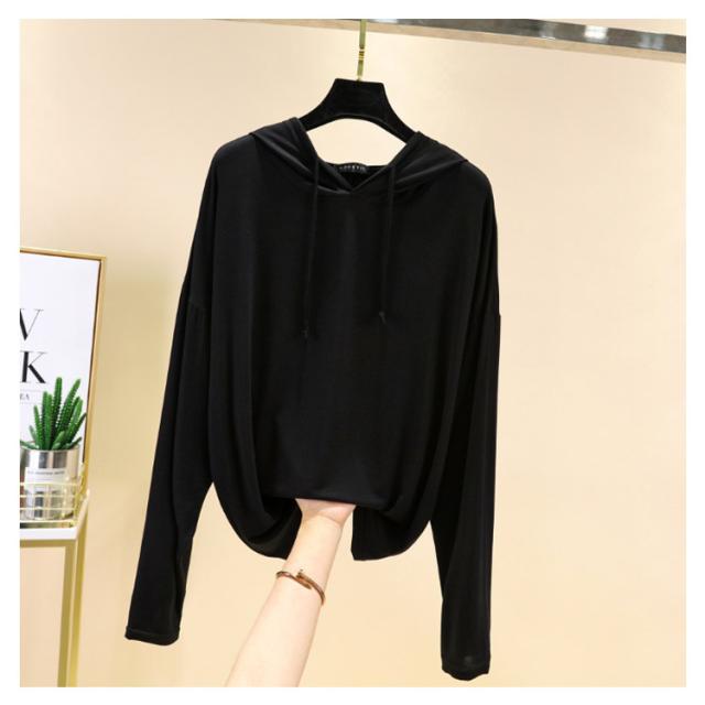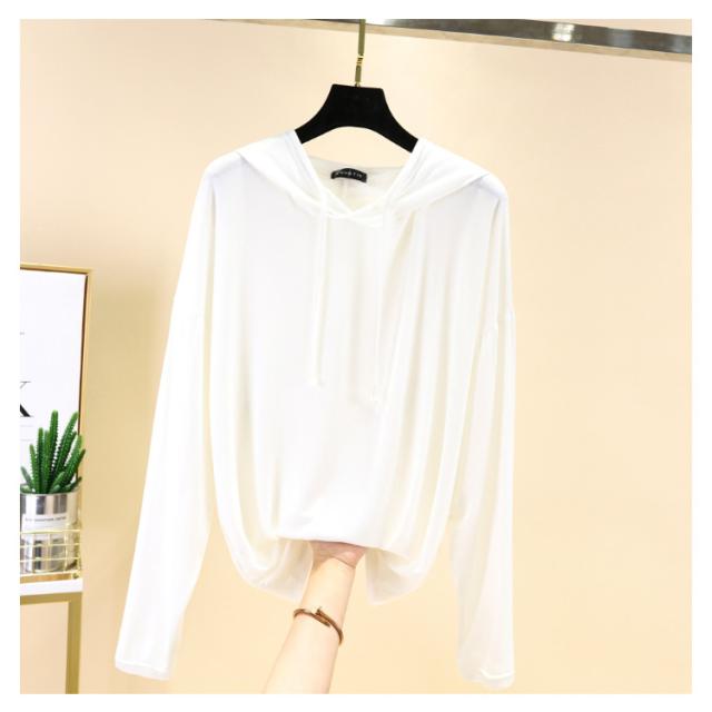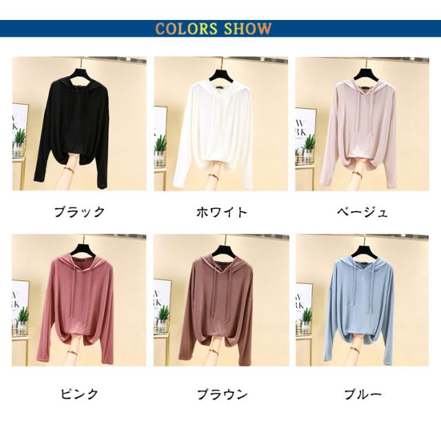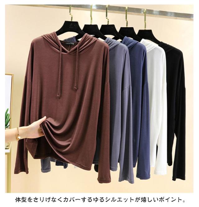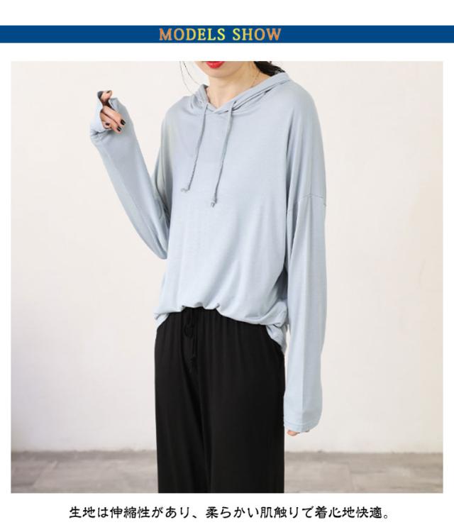 フード付きtシャツ レディース 薄手 パーカー 長袖 パーカー トップス カットソー 白 カジュアル 伸縮性 ストレッチ 無地パーカー 春 秋服 春物 ルームウエア プルオーバー 黒 ブラック ホワイト