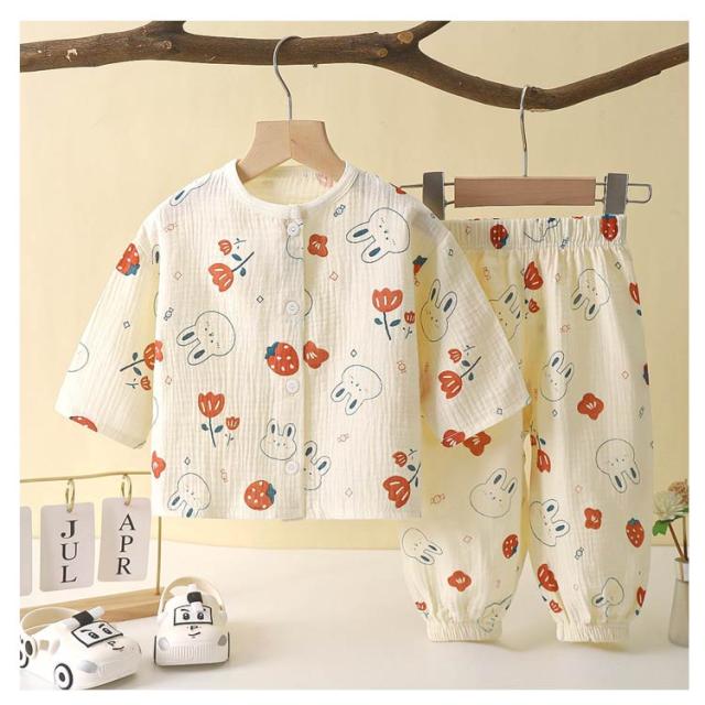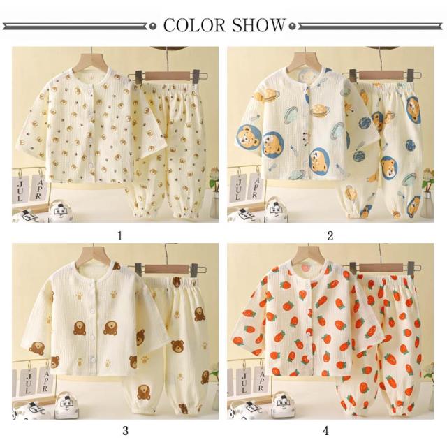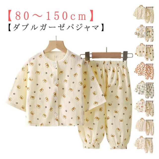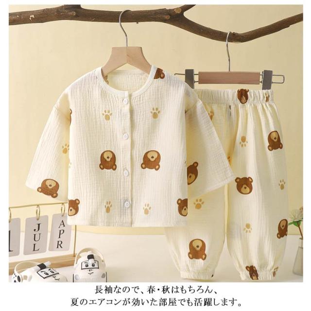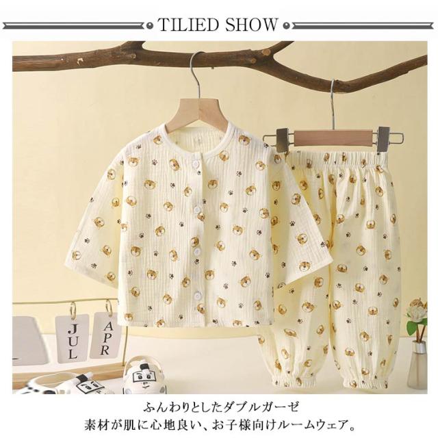 パジャマ キッズ 綿 ダブルガーゼ 長袖 ルームウェア 女の子 男の子 上下セット 前開き 部屋着 子ども こども 子供服 春 夏 秋 80 90 100 110 120 130 140 送料無料